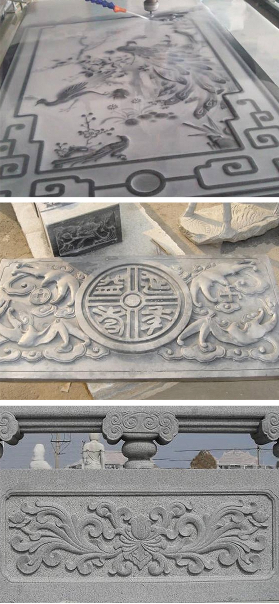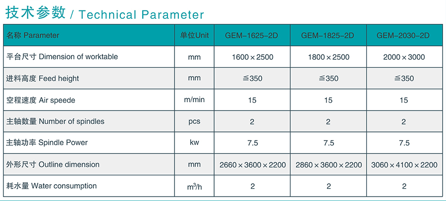 本机采用数控系统控制,三轴联动,双排四列滑块,恒功率主轴电机,双向刀具冷却系统,具有运行平稳、精度高和效率高等优点,适用于加工大理石、花岗岩、青石、玉石、玛瑙、铜板和铝板等材料。