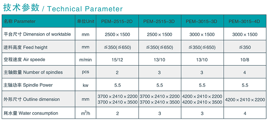 本机采用数控系统控制,三轴联动,双排四列滑块,恒功率主轴电机,双向刀具冷却系统,具有运行平稳、精度高和效率高等优点,适用于加工大理石、花岗岩、青石、玉石、玛瑙、铜板和铝板等材料。